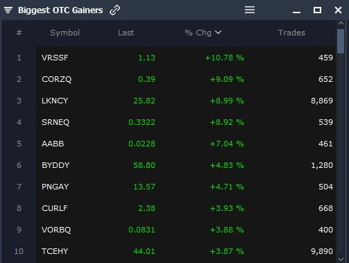 VRSSF, CORZQ, LKNCY, SRNEQ, AABB, BYDDY, PNGAY, CURLF, VORBQ, TCEHY