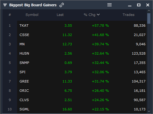 Biggest Big Board Gainers