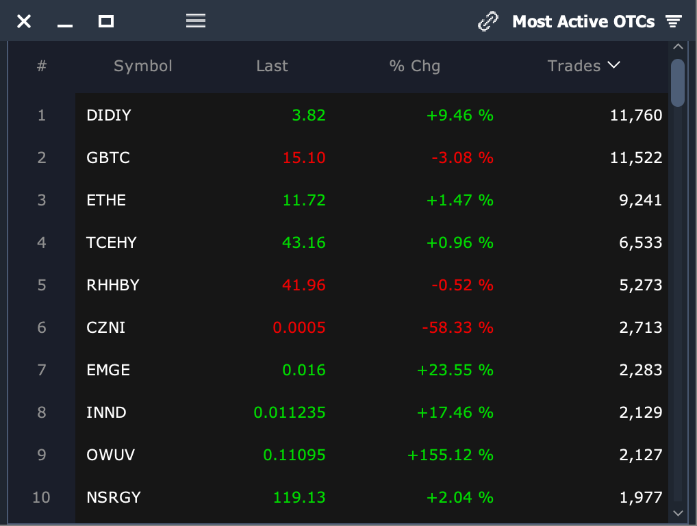 Most Active OTCs