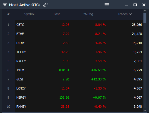 GBTC, ETHE, DIDIY, TCEHY, RYCEY, TXTM, GESI, LKNCY, NSRGY, RHHBY