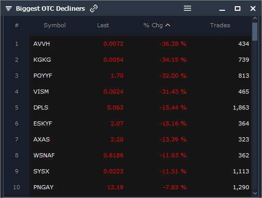 AVVH, KGKG, POYYF, VISM, DPLS, ESKYF, AXAS, WSNAF, SYSX, PNGAY
